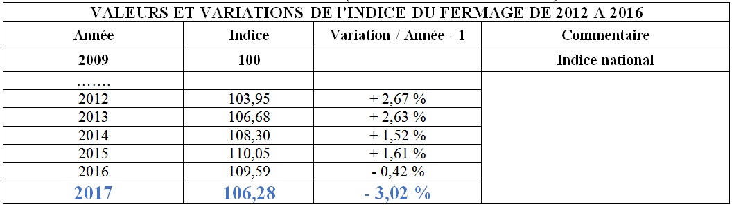 INDICE NATIONAL DU FERMAGE (sur les 5 dernières années)